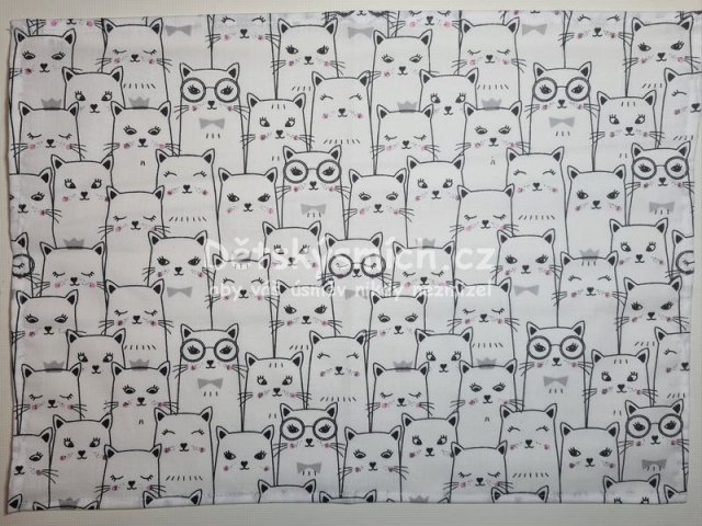 Látkový ubrousek pod svačinu Kočičí průvod na bílé - Kliknutím na obrázek zavřete